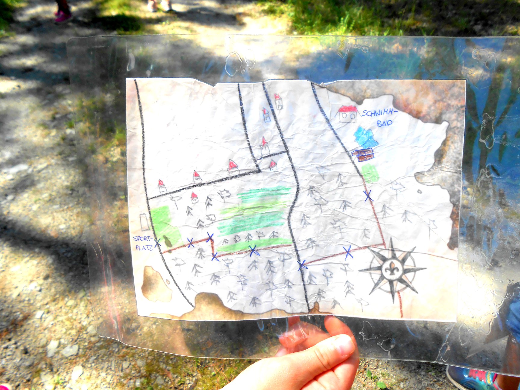 Um dem Schatz näher zu kommen, mussten die Kinder an verschiedenen Stationen Aufgaben lösen: Sie balancierten über Baumstämme, warfen Zapfen in Weidenkörbe, ahmten Tiere nach, erkannten Baumarten und meisterten sogar ein Hinkelsteinrennen.