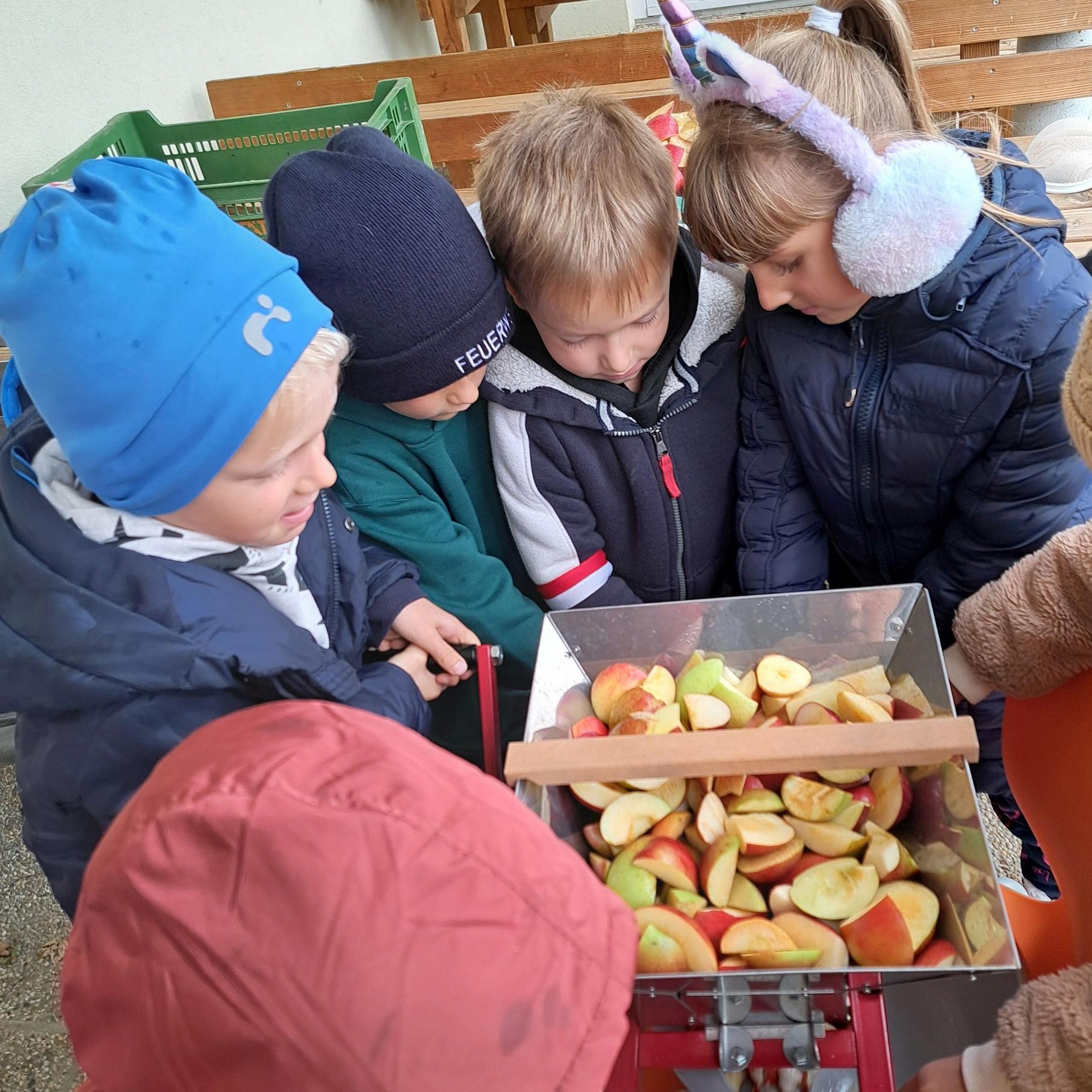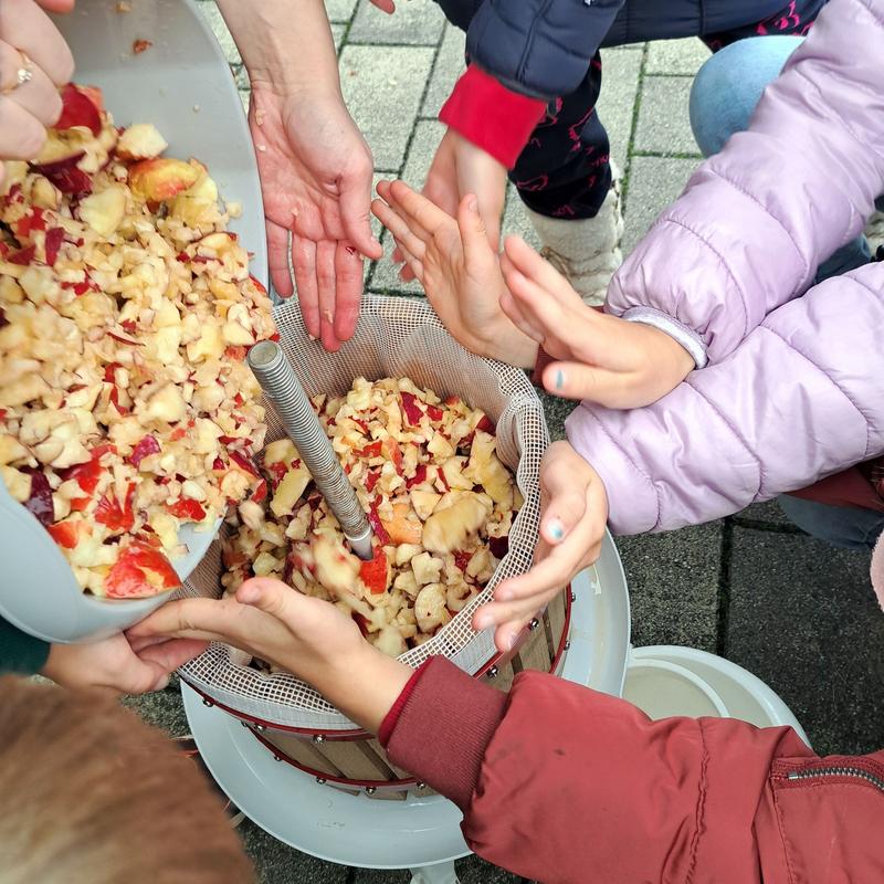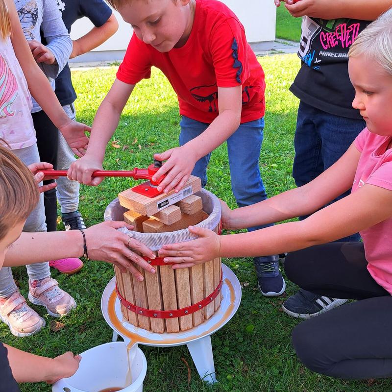 Der besondere Höhepunkt des Projekts ist das gemeinsame Pressen von frischem Apfelsaft. Nachdem die Kinder verschiedene Apfelsorten verkostet und miteinander verglichen haben, dürfen sie selbst aktiv werden: Die Äpfel werden zerkleinert, gepresst und schließlich als eigener, frisch hergestellter Saft verkostet. Auf diese Weise verwandelt sich eine einfache Frucht in ein echtes Naturerlebnis.